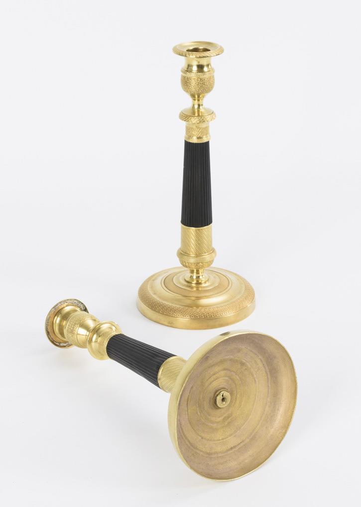 Sie befinden sich hier:   Startseite Kategorien Metallarbeiten Paar Leuchter mit geschwärztem Schaft