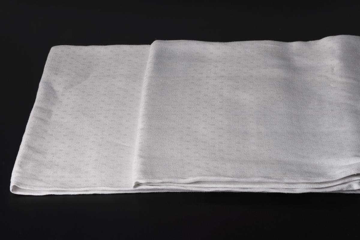 Halbleinendamast, gesticktes rotes Monogramm "IK" mit Nr. "1". 190 x 320 cm.