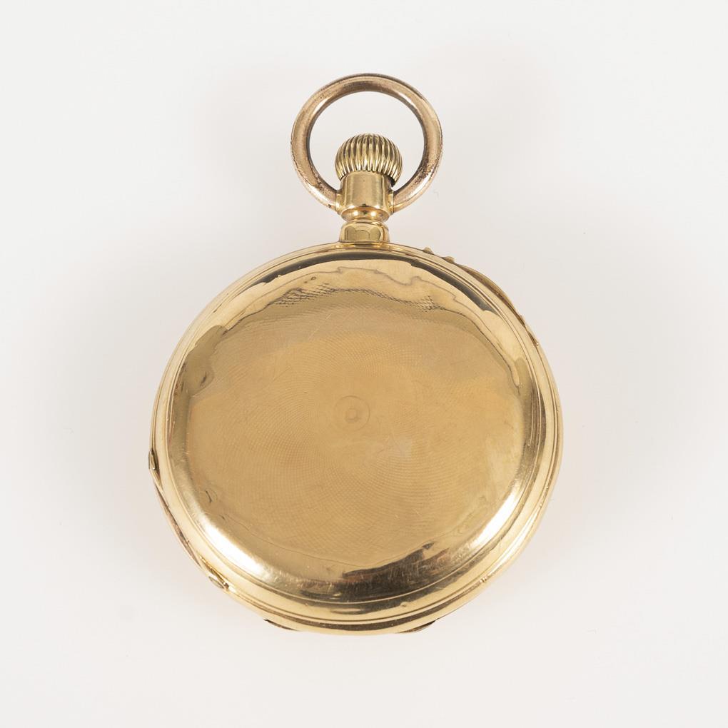 Guillochiertes Sprungdeckelgehäuse mit gravierter leerer Wappenreserve. Gehäuse berieben, Bügel wurde wohl ersetzt.