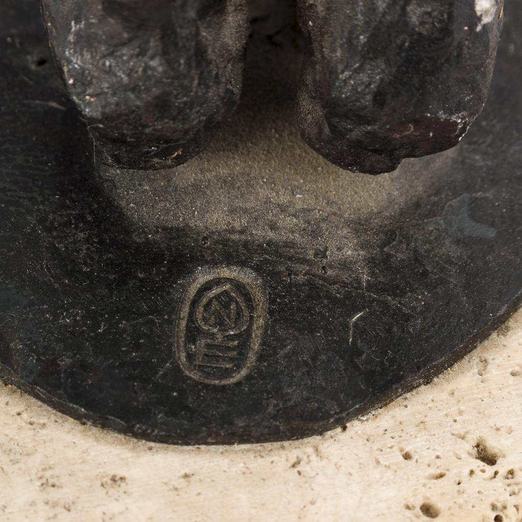 Eisen gegossen und geschmiedet, schwarz patiniert, Kalkstein-Plinthe. Mit Monogramm bezeichnet, unter der Plinthe bezeichnet/betitelt/datiert: (19)76. H 37 / 40 cm.