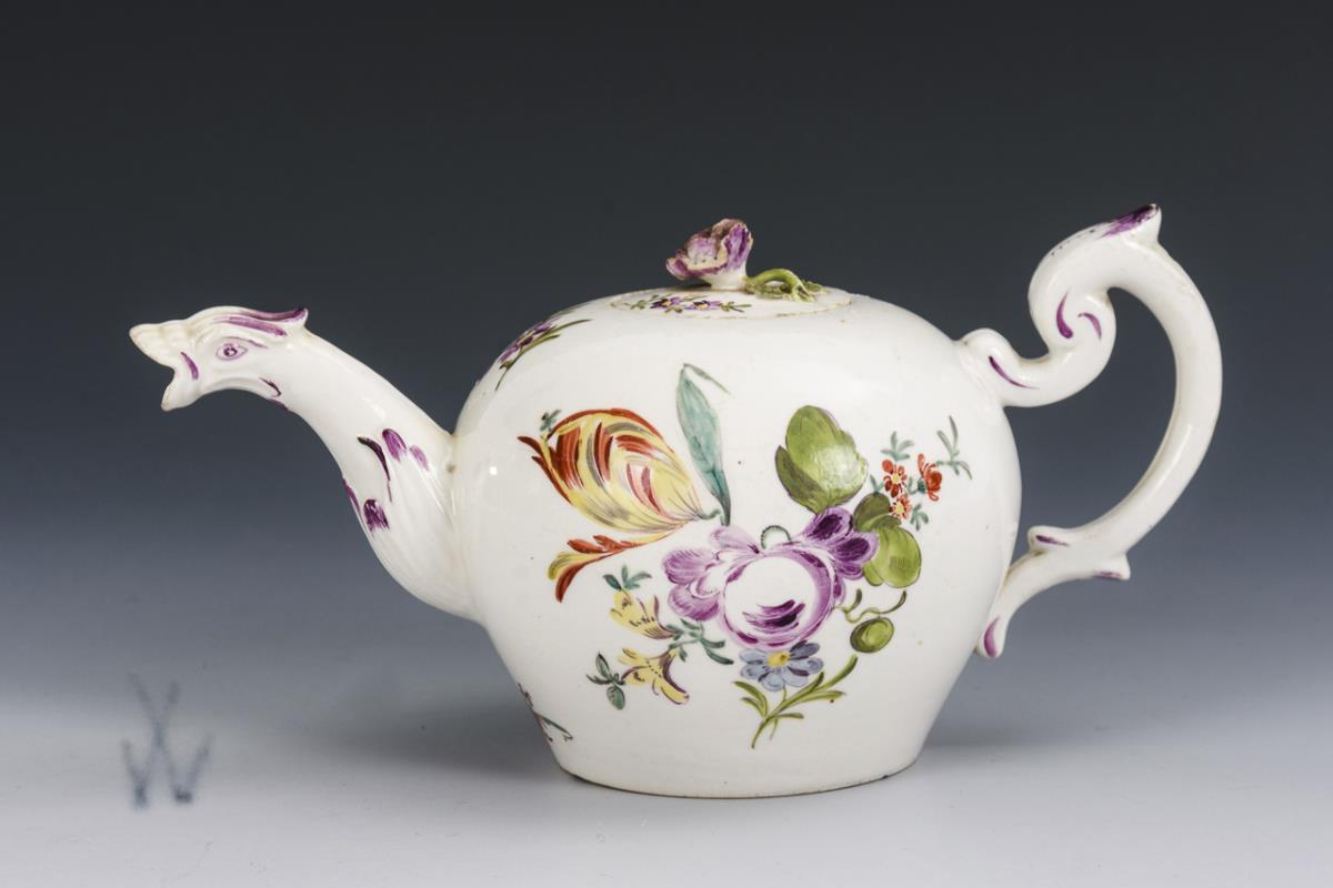 Barockes Teekännchen mit Blumenmalerei. Wallendorf.