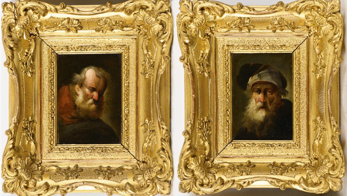 Jeweils ein Charakterkopf im hellen Schlaglicht. Retuschiert, etwas verschmutzt.