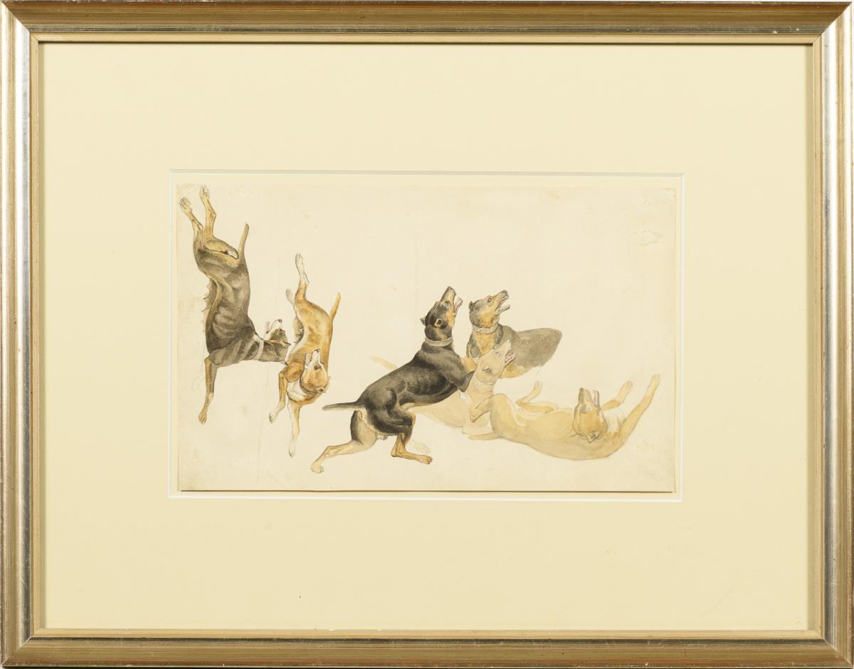 Sechs Jagdhunde in verschiedenen "Gesten". Minimal fleckiges Papier.
