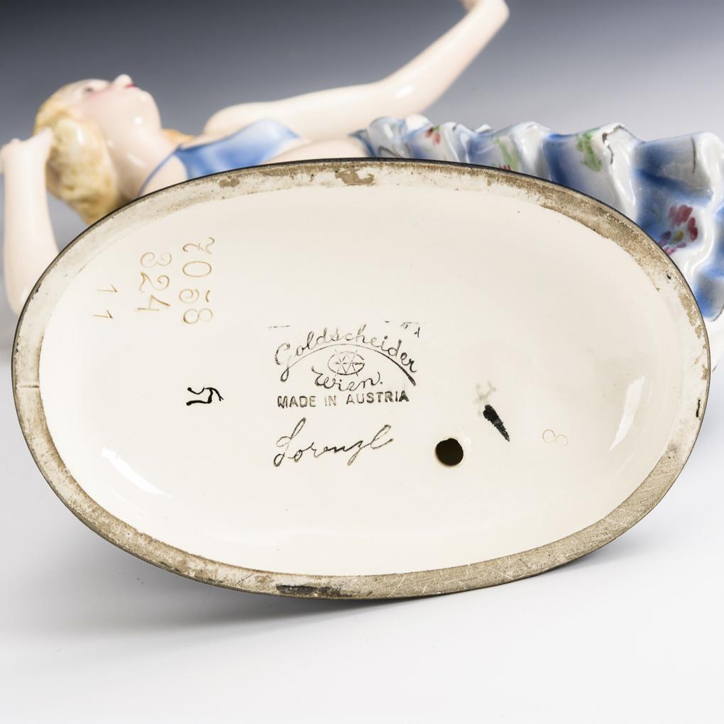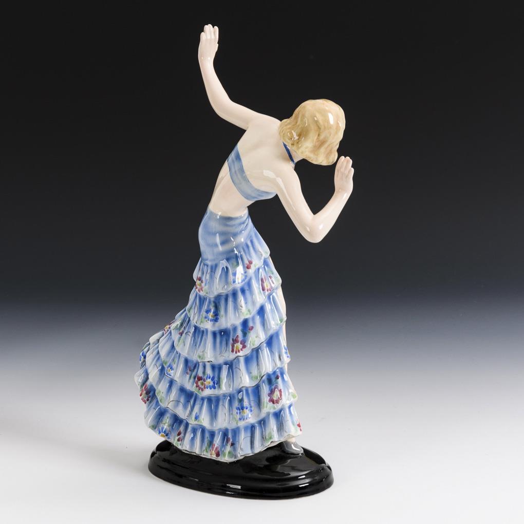 Schreitende Art-déco-Tänzerin in Pose. Wiener Manufaktur Friedrich Goldscheider.