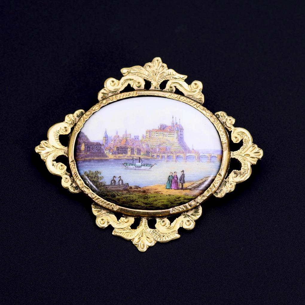 Meissen-Brosche mit Miniatur der Albrechtsburg Meissen 2. H. 19. Jh.