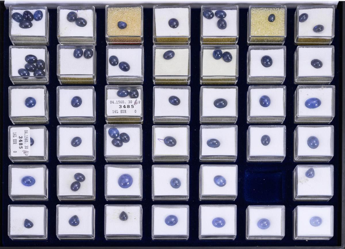 51 Saphircabochos oval/4 Saphircabochons Tropfen/4 Saphircabochons rund.