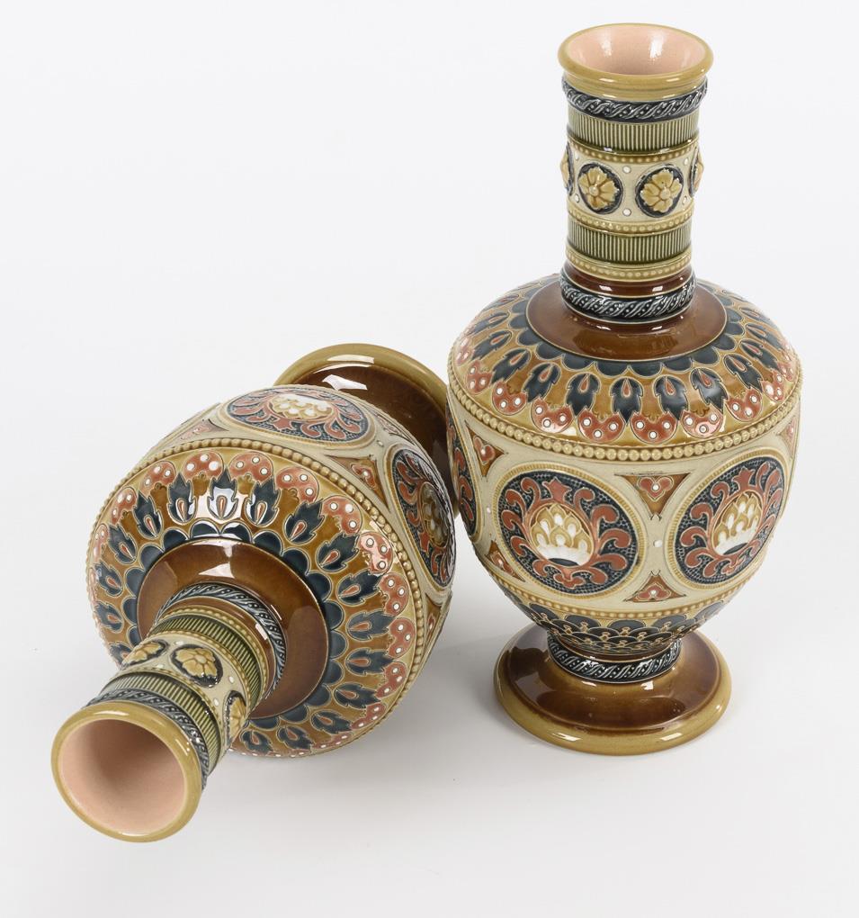 Paar Gründerzeit-Enghalsvasen mit historistischem Reliefdekor. Villeroy & Boch.