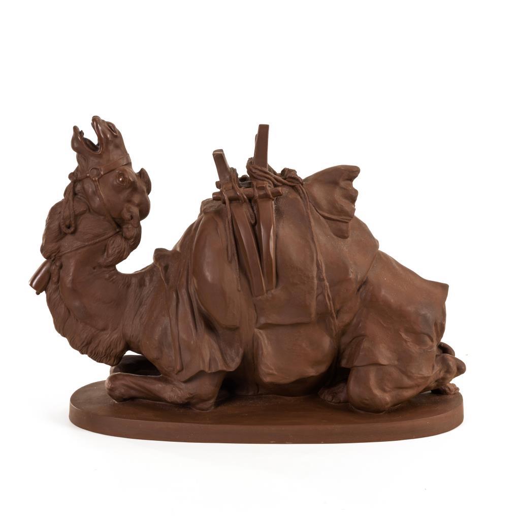 Große Plastik eines liegenden Dromedares als Lasttier.