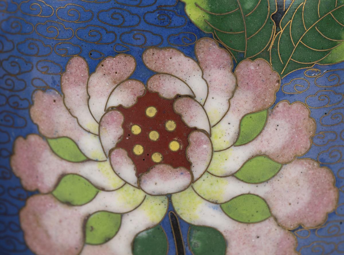 2 Cloisonné-Vasen in Braun und Blau.