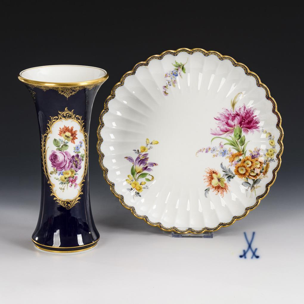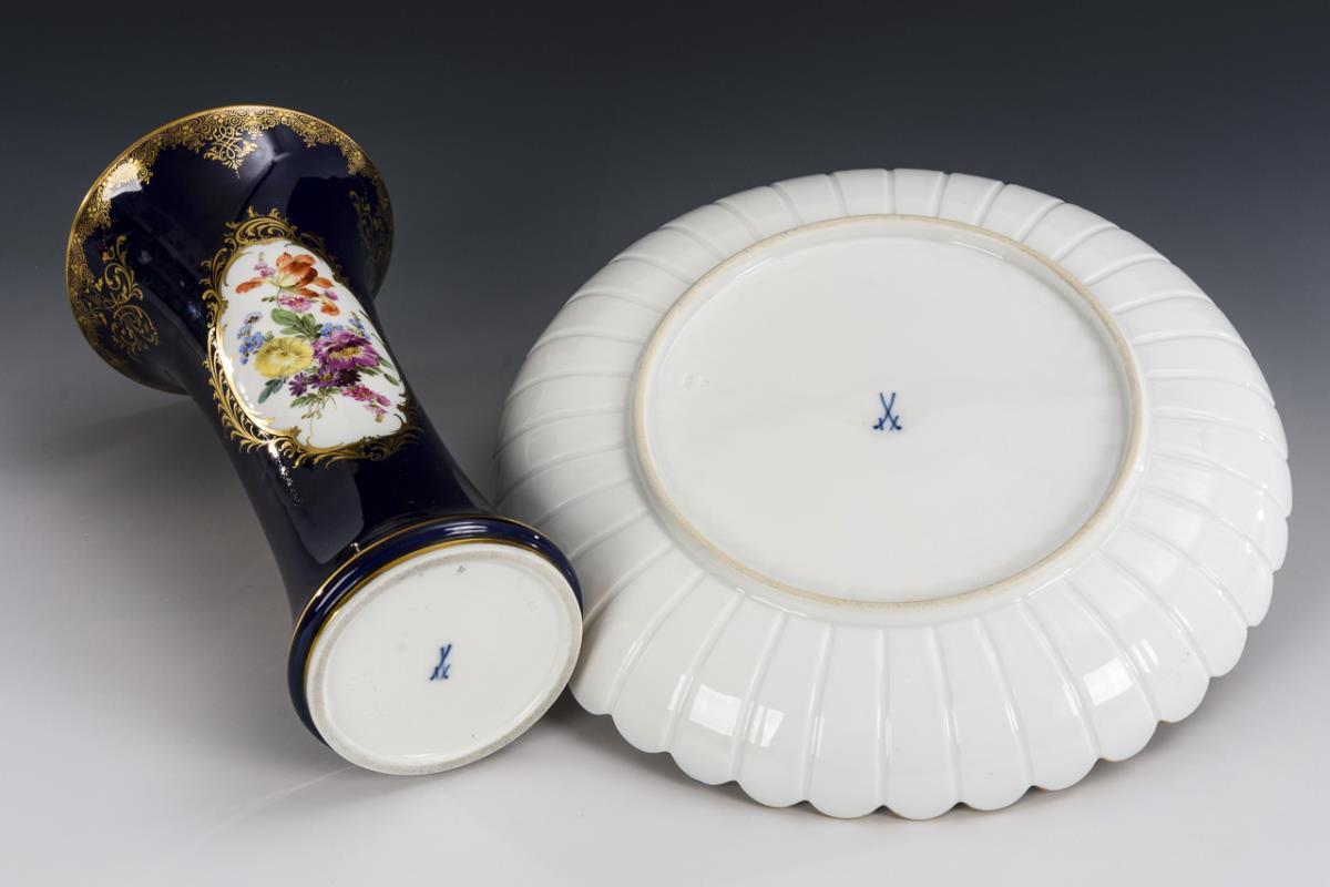 Kobaltvase und Fächerplatte. Meissen.