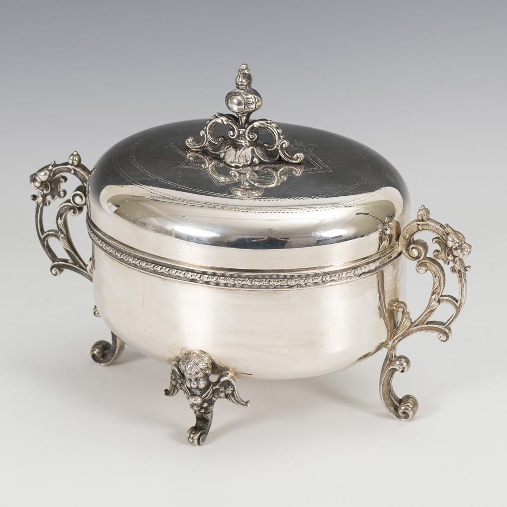 Ovale Dose im Stil der Zeit um 1900. Deckel klemmt etwas.