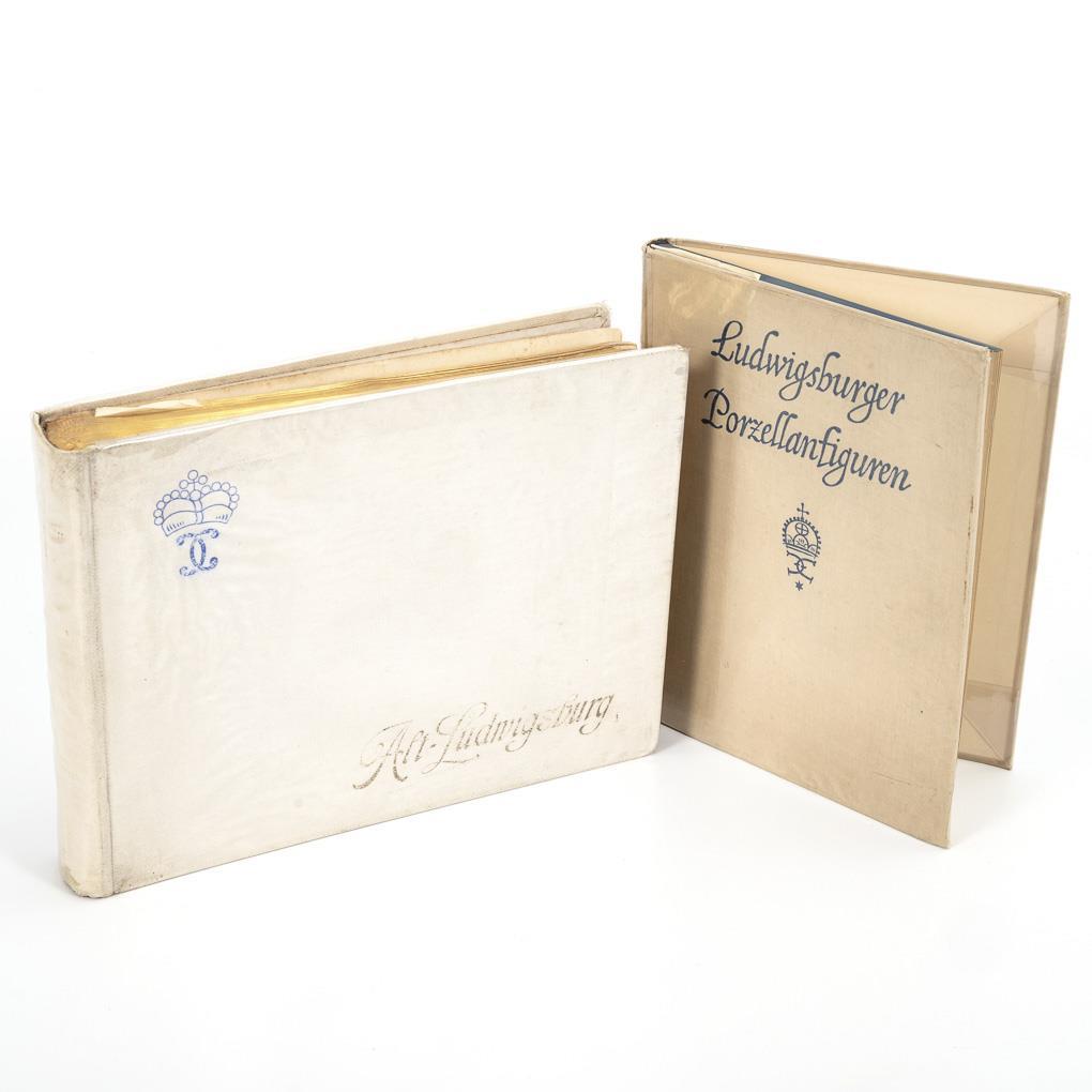 "Album der Erzeugnisse der ehemaligen Württembergischen Manufaktur Alt-Ludwigsburg", Herausgeber Wanner-Brandt, Kunstgeschichtliche Abhandlung Berthold Pfeiffer, Stuttgart (1906), im Leineneinband mit Goldschnitt, 24,5 x 33 cm. / Hans Christ: "Ludwigsburger Porzellanfiguren", Deutsche Verlagsanstalt, Stuttgart und Berlin 1921. 61 Textseiten und 120 Bildseiten.28 x 21 cm, Leineneinband. Gebrauchsspuren.