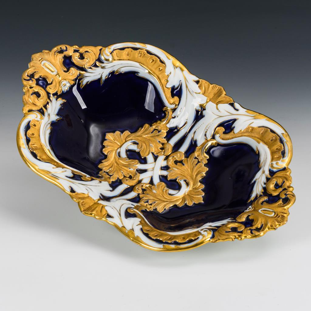 Rechteckige Schale mit Rocaille- und Akanthusblattrelief. Restauriert.