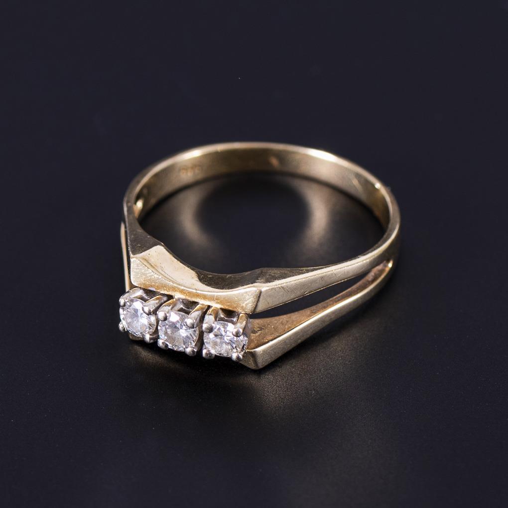 3 kleine, chatongefasste Brillanten zwischen mittlerer Schiene.