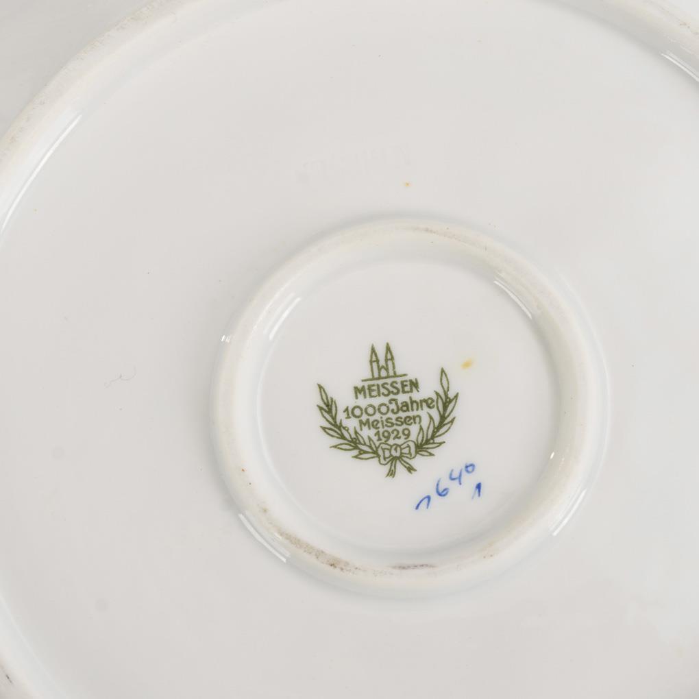 17 Teile. Form "Neubrandenstein". 6 Speiseteller, 6 Suppenteller, 2 Ovalplatten (L 35 und 43,5 cm), 1 Sauciere und 2 Quadratschüsseln (22 x 22 cm). Partiell minimaler Goldabrieb, teils Kratzspuren im Spiegel.