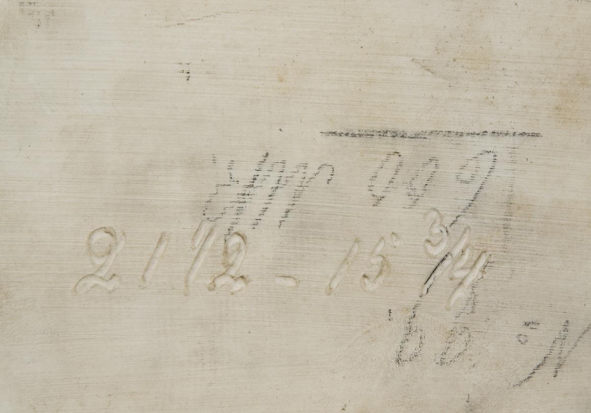Feine farbige Bemalung nach der Gemälde-Vorlage von Heinrich Ferdinand Hofmann (1824 Darmstadt - 1911 Dresden). Das Gemälde hängt in der Gemäldegalerie Neue Meister in Dresden. Signiert: L. Sturm. Unglasierter Boden, Pressmarke, Ritzmarke. Profilierter Waschgoldrahmen. Am oberen Rand minimale Abreibung, Rahmen partiell defekt.