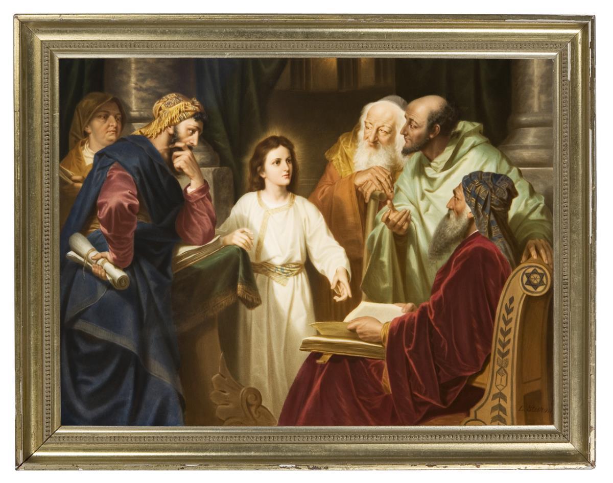 Große Bildplatte: Der Jesusknabe im Tempel. KPM Berlin.