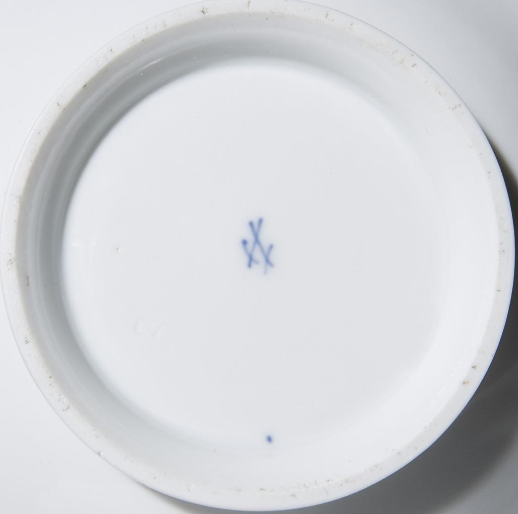 Barock-Tasse mit Vogelmalerei, Untertasse. Meissen.