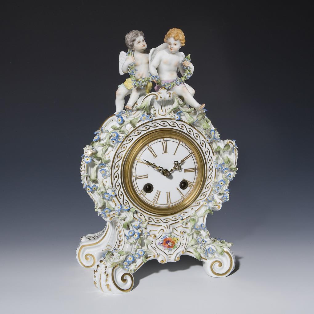Amoretten-Kaminuhr mit plastischen Belägen. Meissen.
