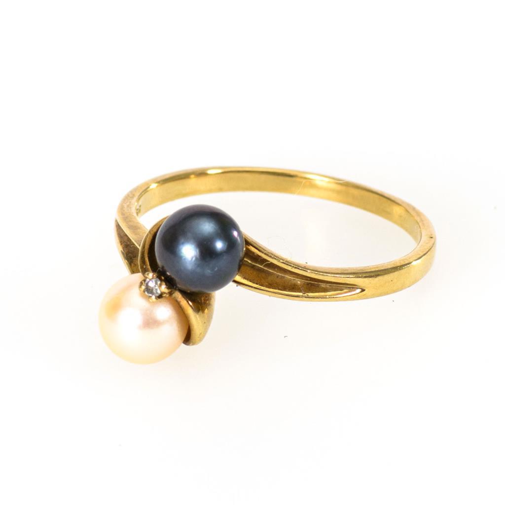 Cremefarbene und dunkle Zuchtperle auf gegenläufiger Schienen-Mitte. Schmale Schiene.
