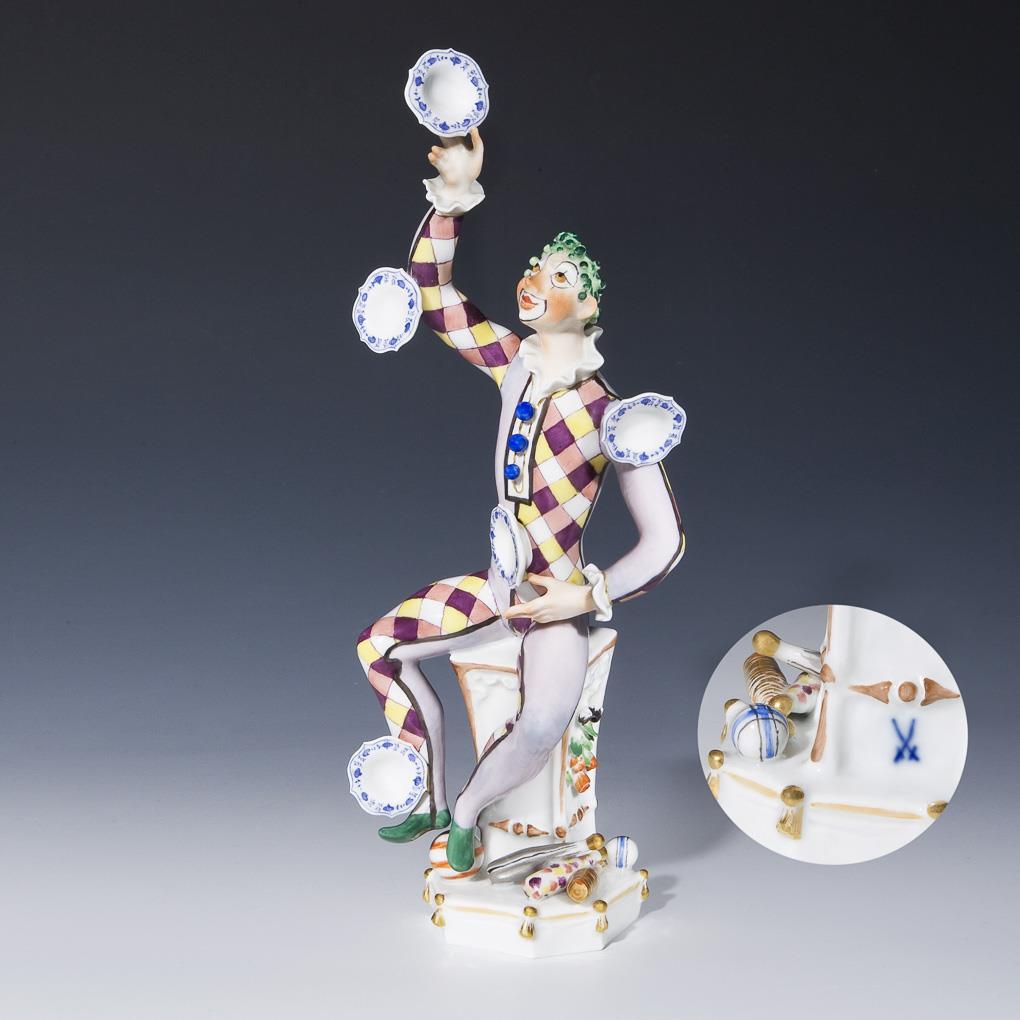 Modell von Peter Strang 1976. Farbig bemalt, gold staffiert. Ritzmarke, Pressmarke, Malermarke, Schwertermarke am Sockel. Eine Hand minimal bestoßen, mit Haarriss.