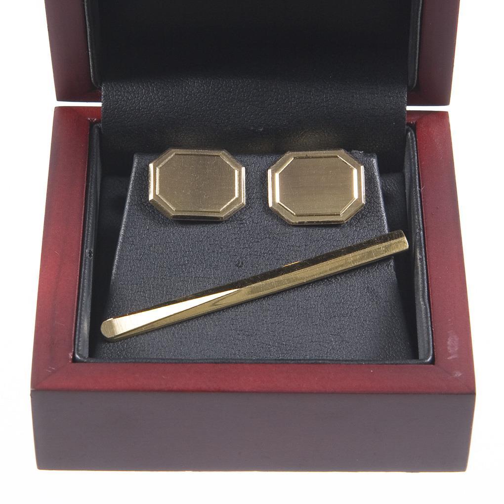 Schmuck-Set: Paar Manschettenknöpfe, Krawattennadel.