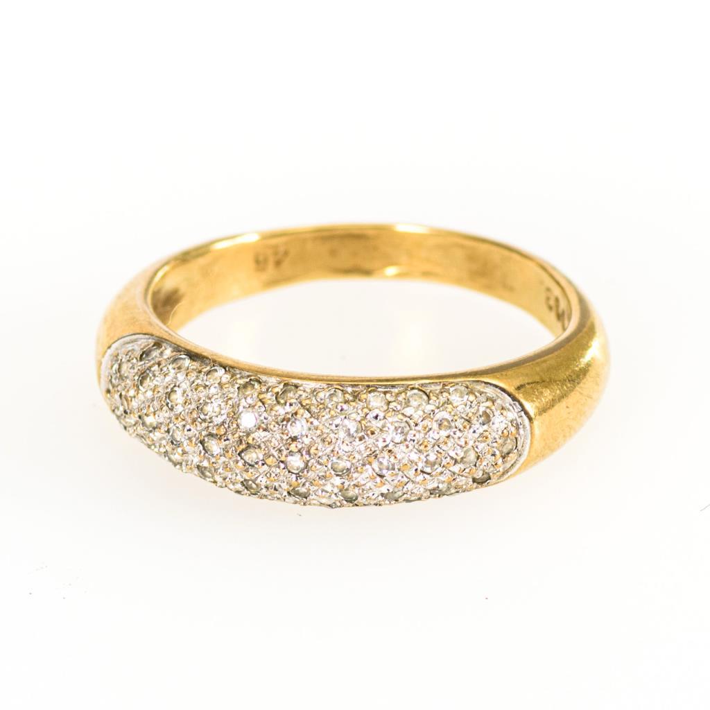 Mittlerer Bandring mit diversen, kleinen pavégefassten Steinen.