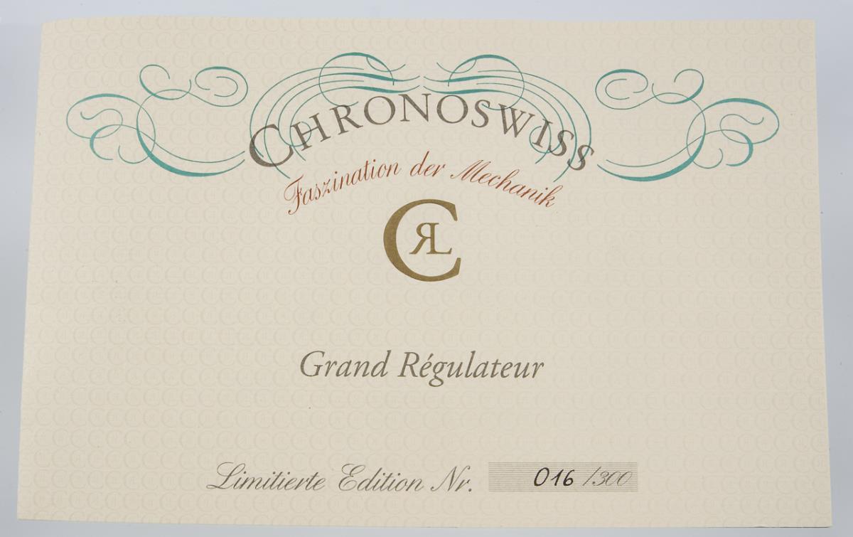 Grand Régulateur Taschenuhr mit Uhrkette, zweiter Gehäuseboden am Armband in Gold| siehe Nachtrag. CHRONOSWISS.