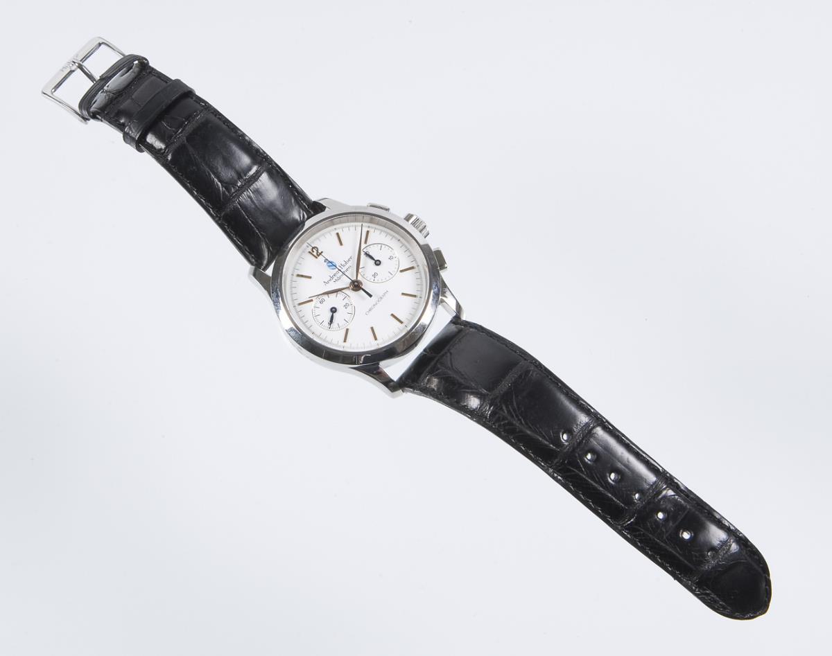 Limitiert, nummeriert: 02/25. Handaufzug. Kaliber Venus 175. Werk mit Genfer Streifen. Saphirglas, weißes Zifferblatt, gebläute Stahlzeiger und Goldzeiger. Hilfszifferblätter für kleine Sekunde und 30-Minutenzähler. Verschraubter Glasboden. Original-Lederband mit Dornschließe. Original-Box, Karton. Im Kurzzeit-Test funktionsfähig.