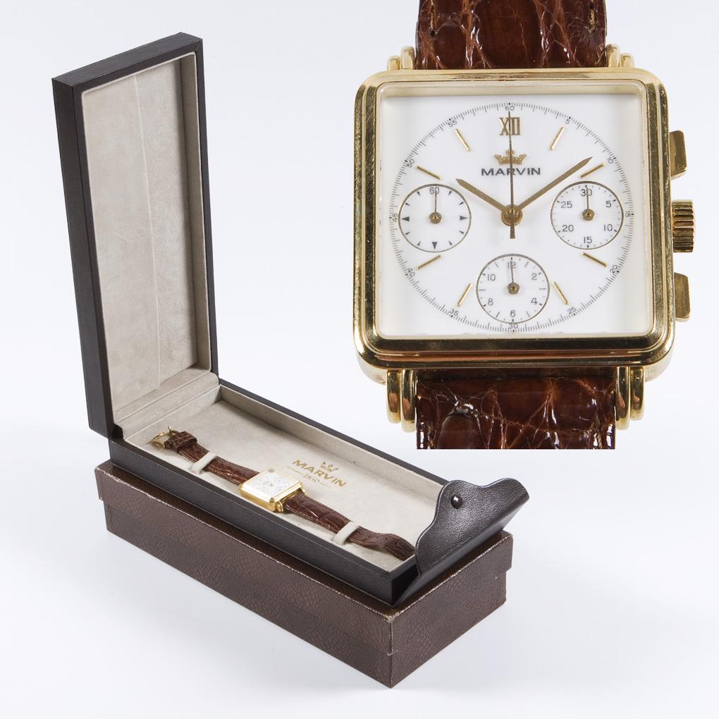 Armbanduhr: Carré Chronograph in Gold. MARVIN.