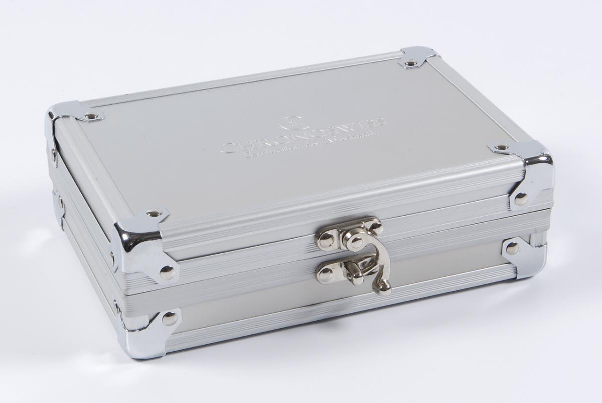 Handaufzugswerke. Ankerhemmungen. Bordmeter Kaliber C 671, Basis ETA-Unitas 6497-1. Mit 18 Steinen. Stoßsicherung, anhaltbare große Sekunde. Gangdauer 44 Stunden. Stopmaster Kaliber C 951, Baisis Minerva 19/56. Mit 7 Steinen. Gangdauer 28 Stunden. Fünftelsekunden-Stoppuhr mit 60-Minuten- und 12-Stundenzähler. Entspiegelte Mineralgläser, schwarze Zifferblätter, markante Super-Lumi-Nova Leuchtzahlen, Leuchtzeiger. Drehbare Lünetten mit Merkpfeil. Auf einer Platte montiert. Garantieschein ohne Eintrag, Bedienungsanleitung. Originale Metall-Box mit Fallriegel. Im Kurzzeit-Test funktionsfähig.
