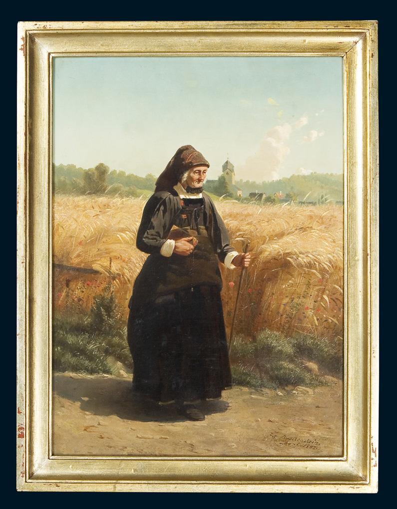 Ein Aquarell des Künstlers mit dem identischen Motiv, signiert, datiert: 1851 (30,5 x 23 cm) befindet sich im Wallraf-Richartz-Museum in Köln und ist im Lexikon der Düsseldorfer Malerschule abgebildet. Profilierter Goldrahmen. Doubliert.