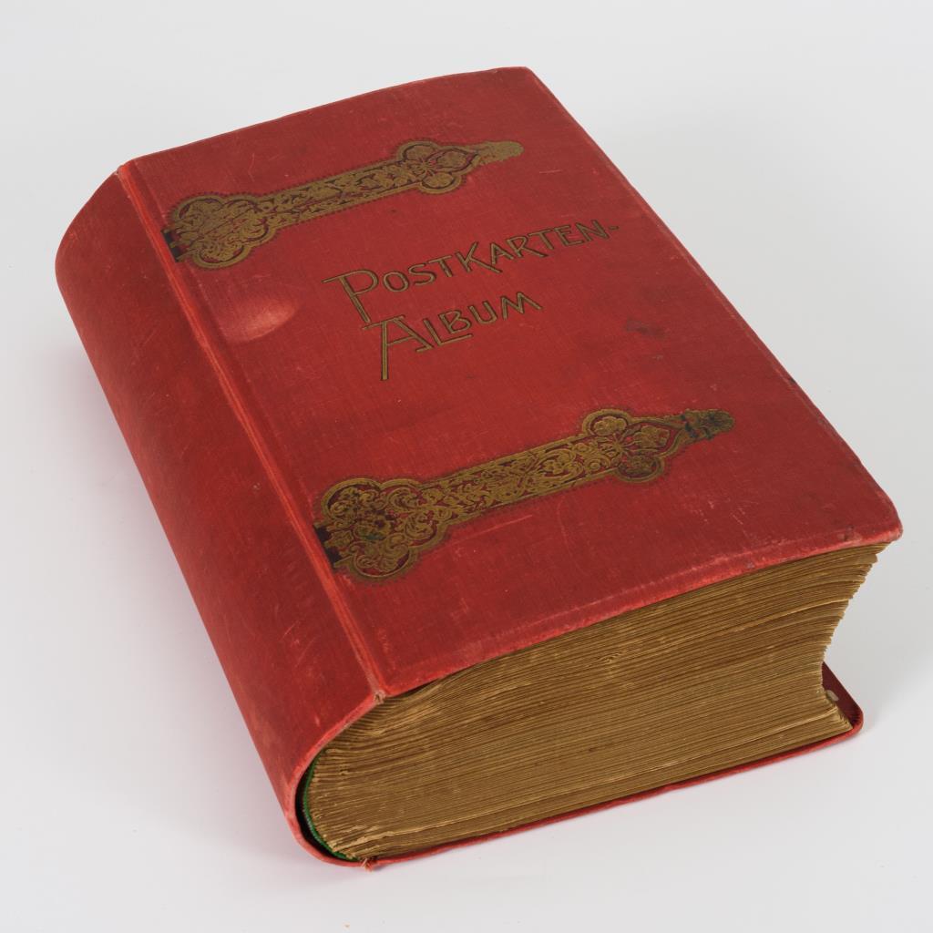 Rotes Album mit Türbänder-Motiv.