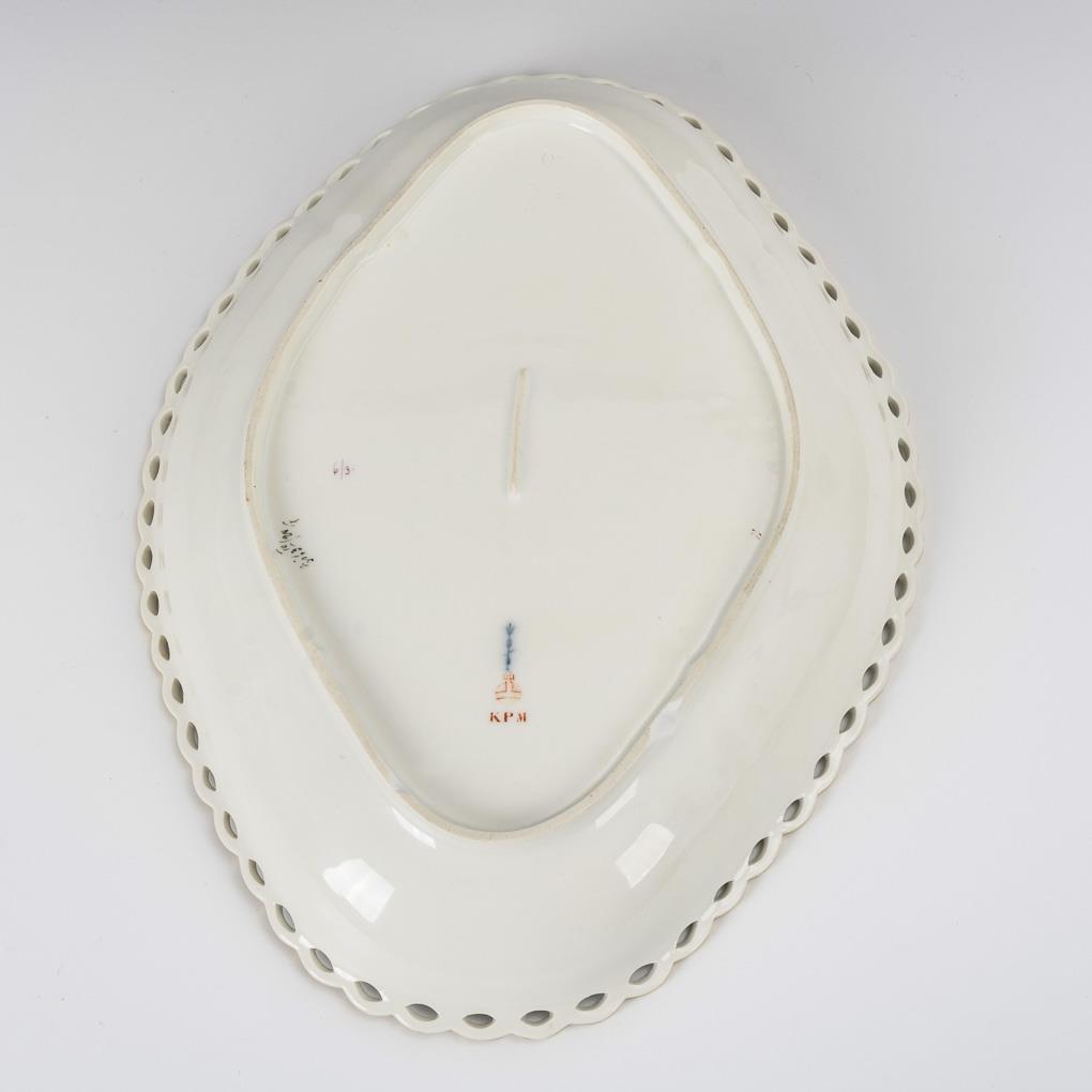 Modell "Neuglatt". Ovale Schale mit Durchbruchrand sowie Blumen- und Insektenmalerei. 2 Bestoßungen am Standring.
