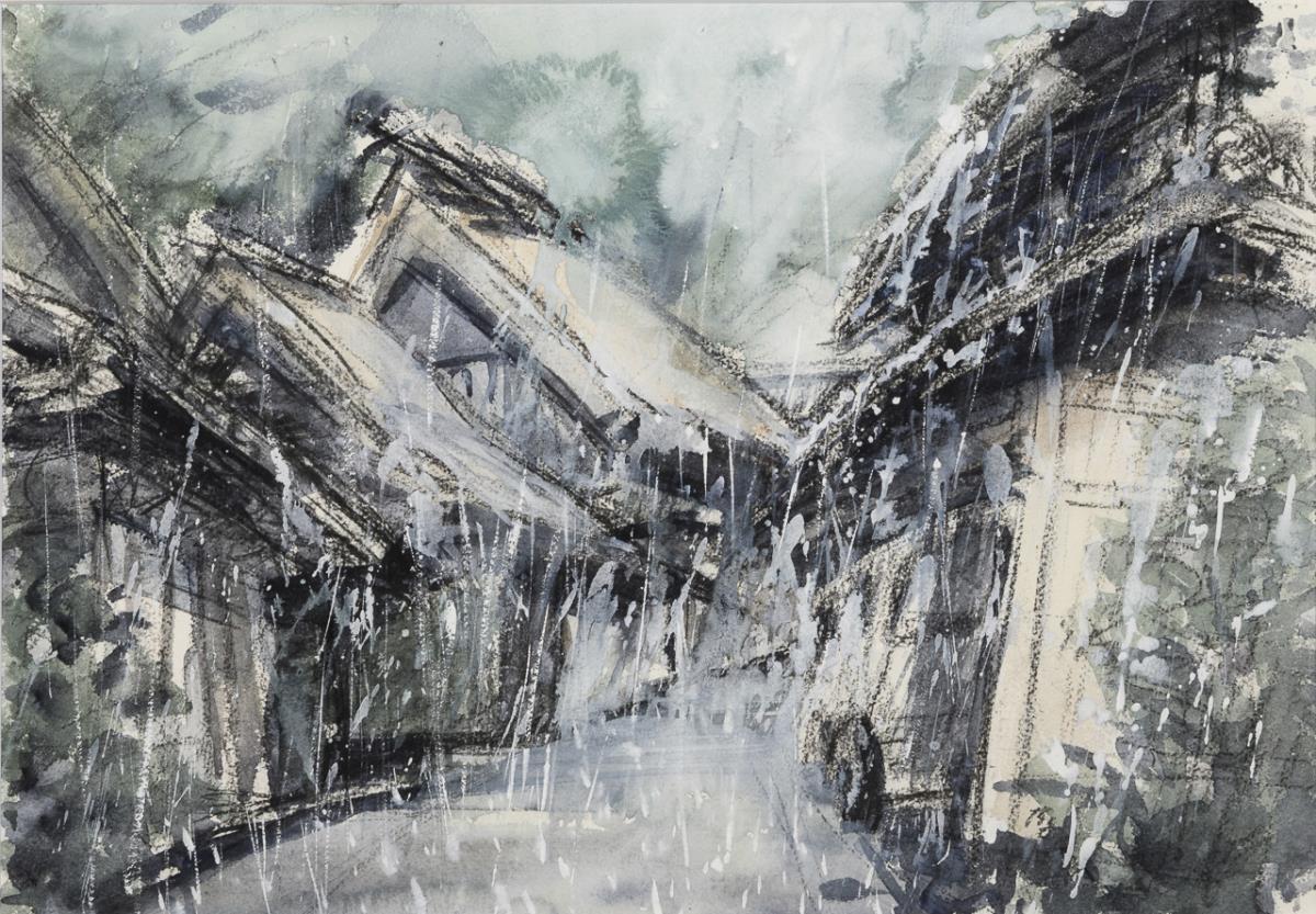 Japanischer Künstler: Gasse im Regen