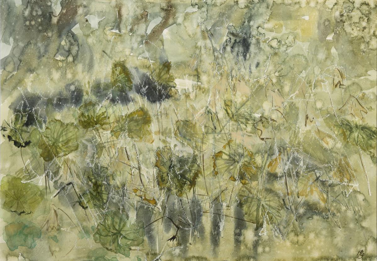 Japanischer Künstler: Abstrakte Wiesenlandschaft
