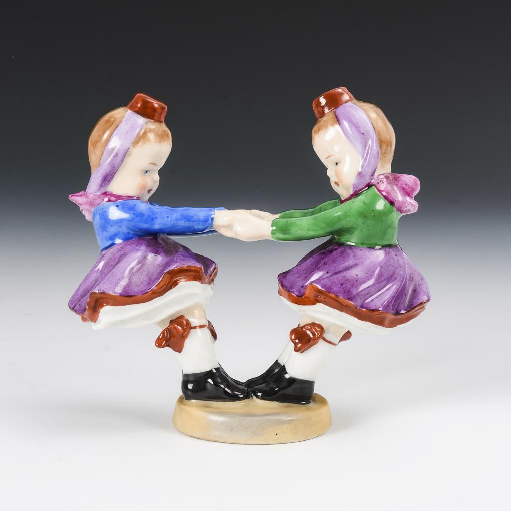 Zwei miteinander tanzende Kinder in Schwälmer Tracht.