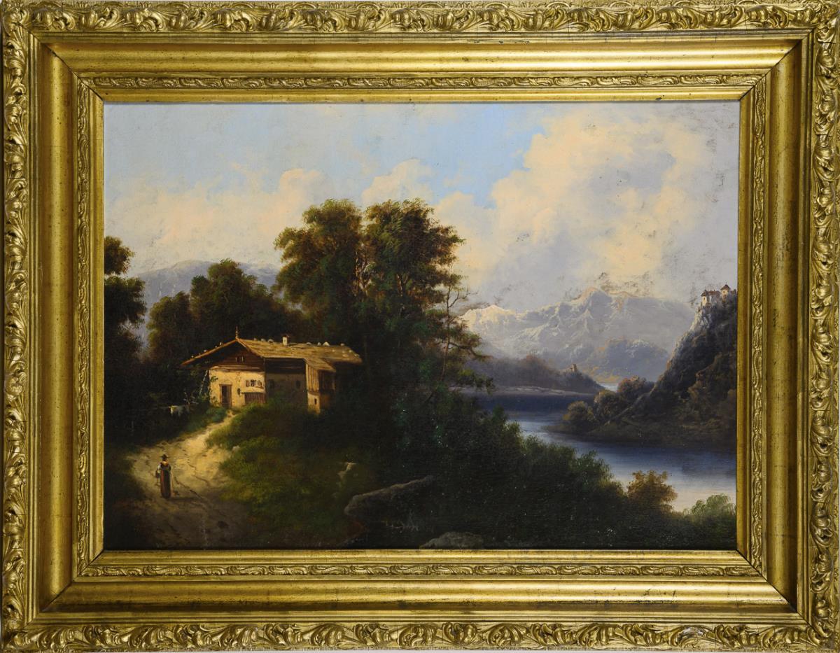 Sie befinden sich hier:   Startseite Kategorien Gemälde Spätromantische Gebirgslandschaft mit Fluss