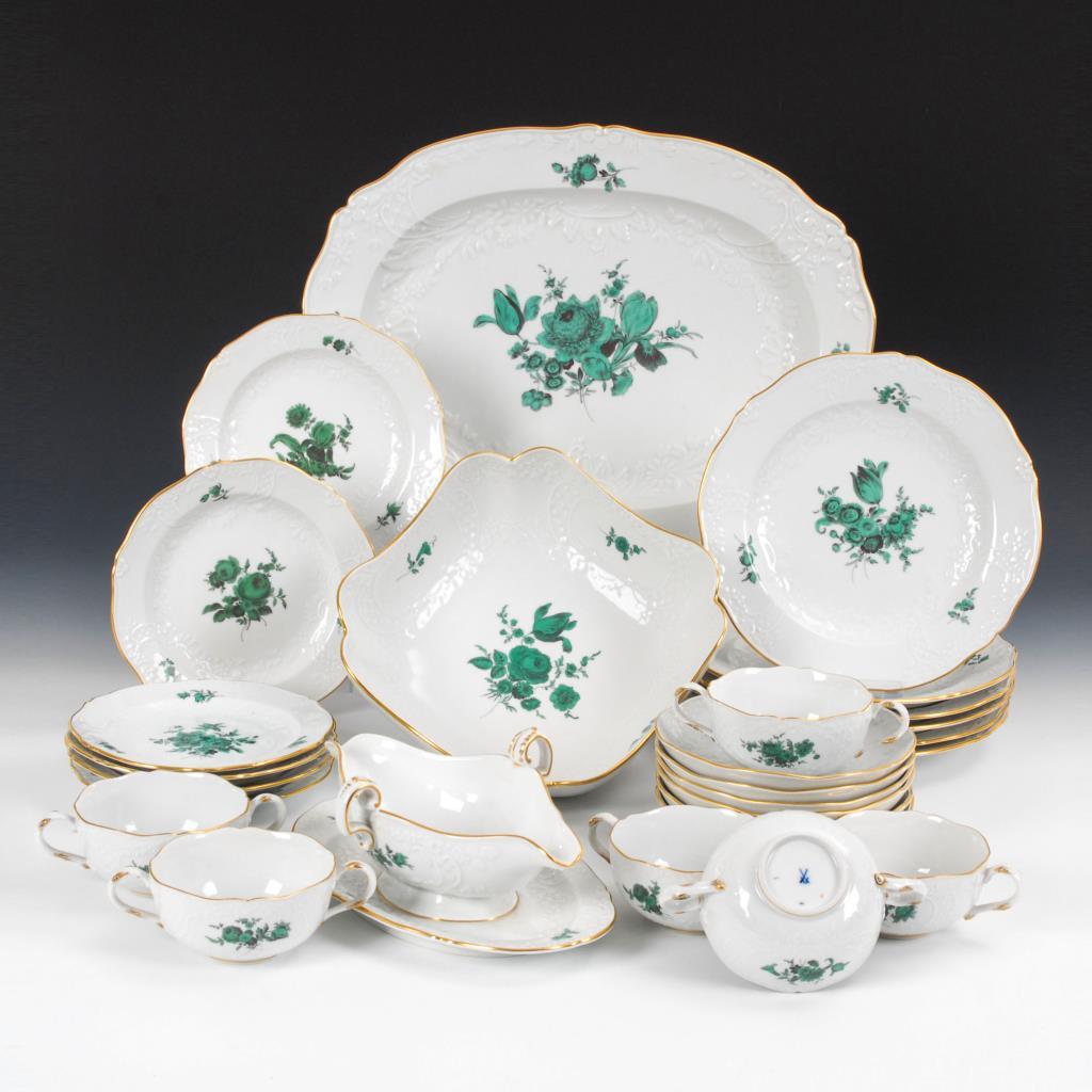 27 Teile. Modell "Marseille". 6 Suppentassen mit 6 Untertassen, 6 Speiseteller, 4 + 2 Salatteller, 1 Quadratschüssel, 1 Sauciere und 1 Ovalplatte.