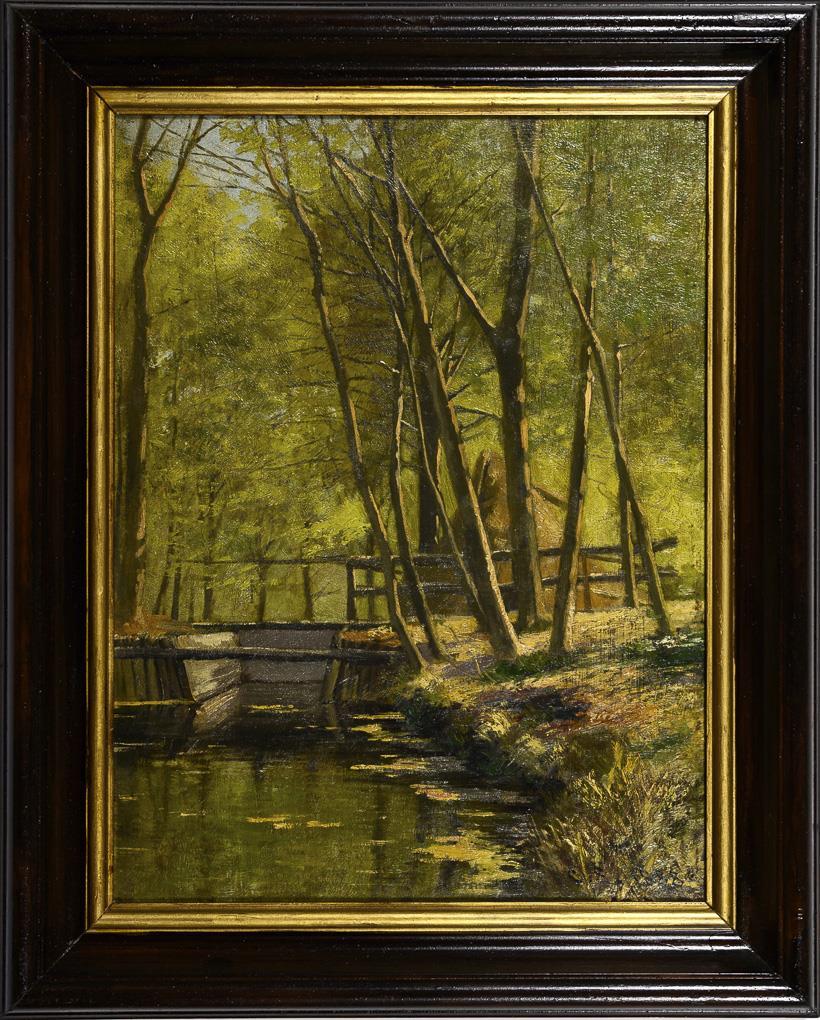 Umkreis Weimarer Malerschule: Bachlauf mit Wehr im Frühling