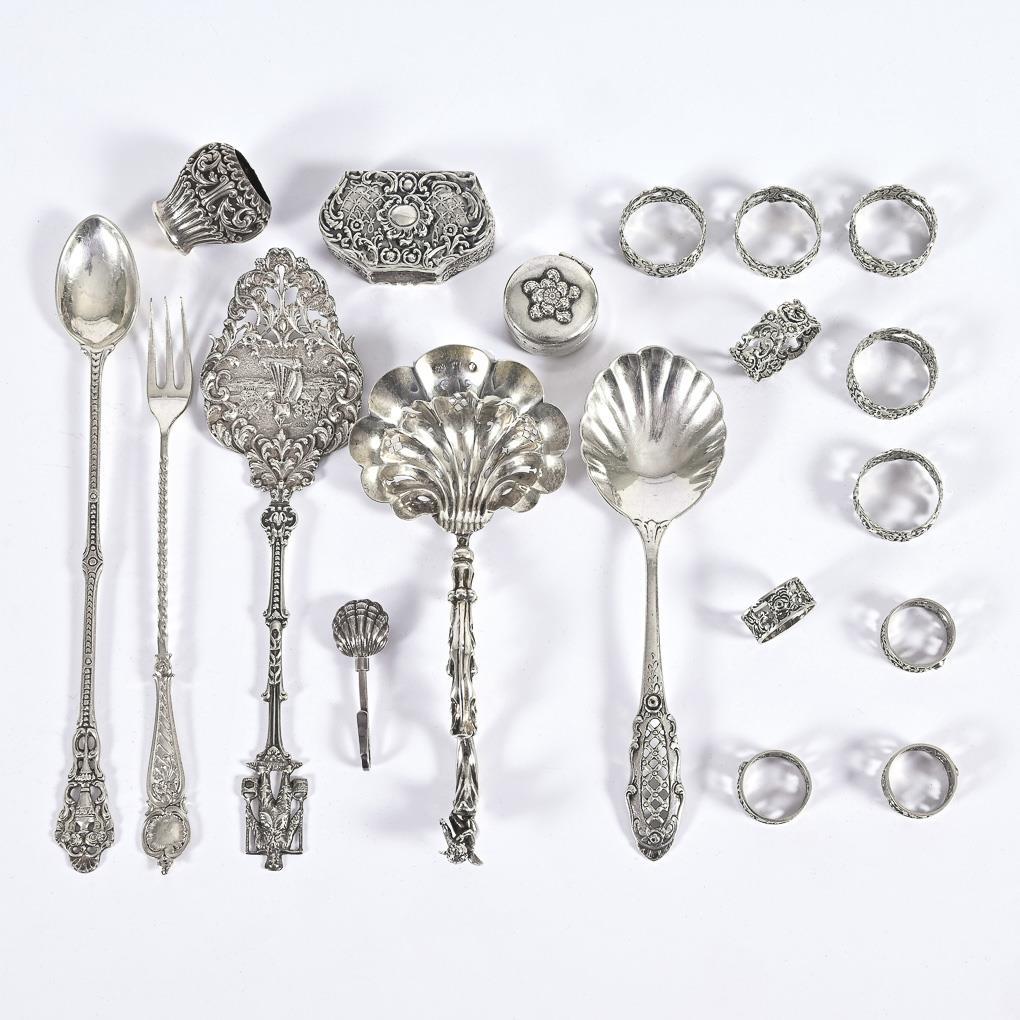 3 Löffel, 1 Heber, 2 Pillendöschen, 10 kleine Serviettenringe etc.