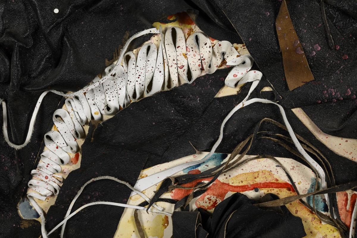 Collage aus Leder und Aquarell. Unsigniert, verso undeutlich kyrillisch bezeichnet. Datiert: 1991.
