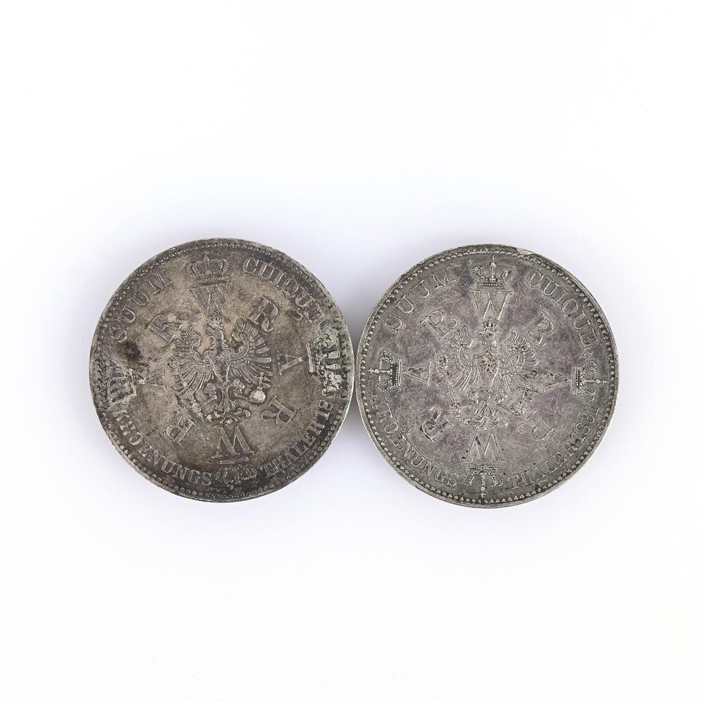 "Wilhelm Koenig Augusta Koenigin v. Preussen". Zustand: sehr schön, eine Münze mit Spuren einer alten Fassung.