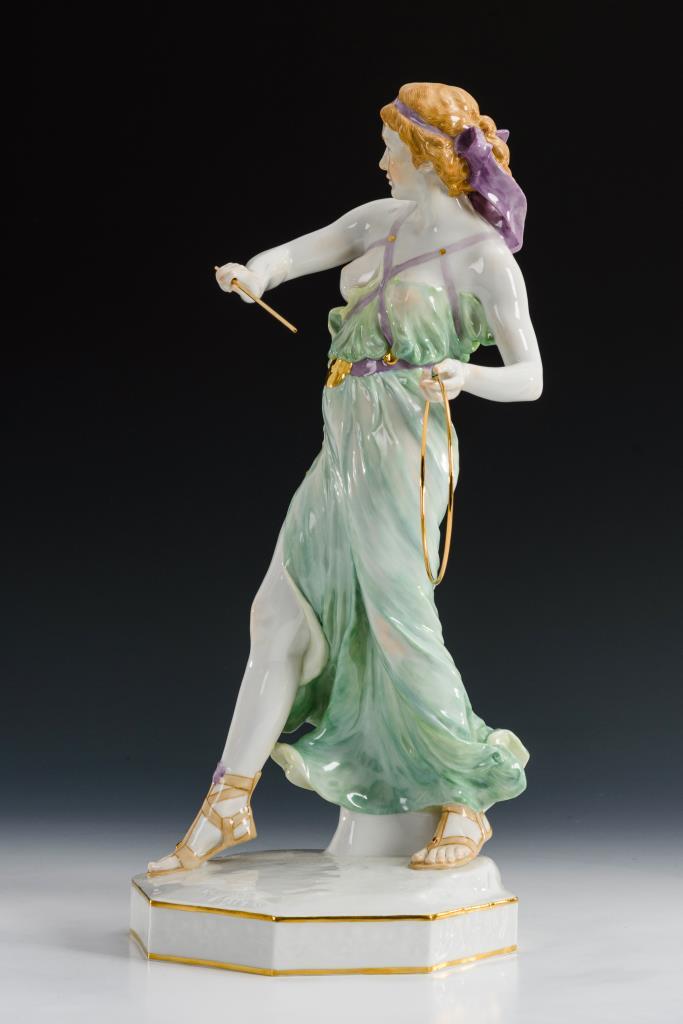 Antikisierend gekleidete junge Frau mit Reifen und Stab.