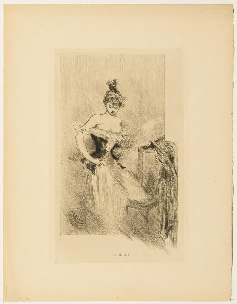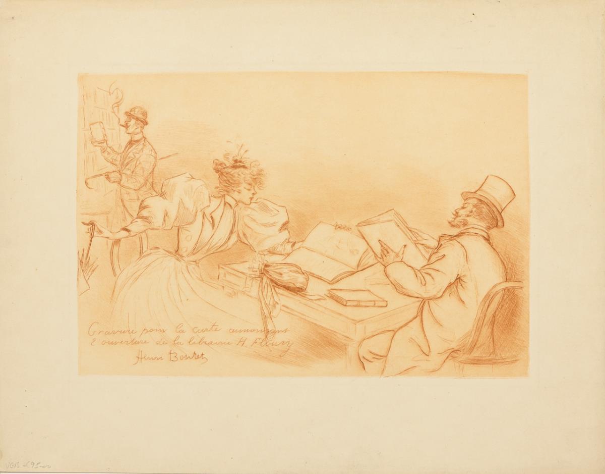 Heliogravuren: "Au bal de l'Opera" | "Le Corset" | "Fanoche" | "Le ruban noir" | "Paulinazza" | "Gravure pour la carte annocant l'ouverture de la librairie H. Floury" | Radierungen: "Trottinette" | "Carrefour de l'Observatoire" .