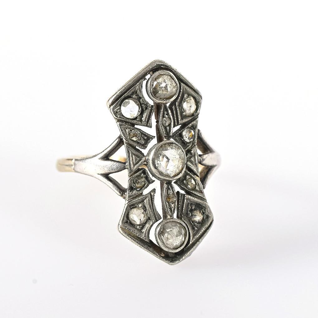 Art-déco-Ring mit Altschliff-Diamanten.