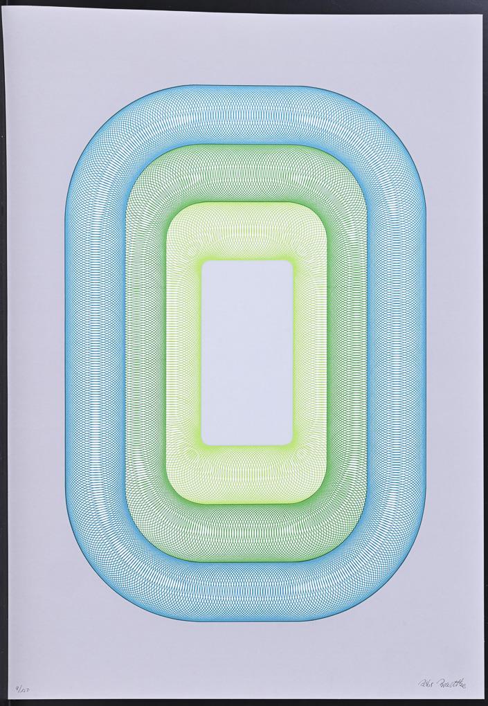 Farbsiebdruck auf Karton. Bleistiftsignatur. Exemplar: 9/150.