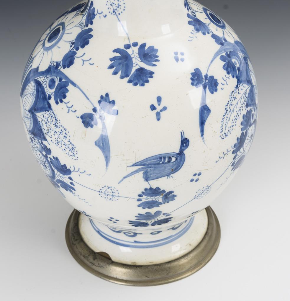 Großer barocker Fayence-Enghalskrug mit Blumen und Vogel. Hanau.