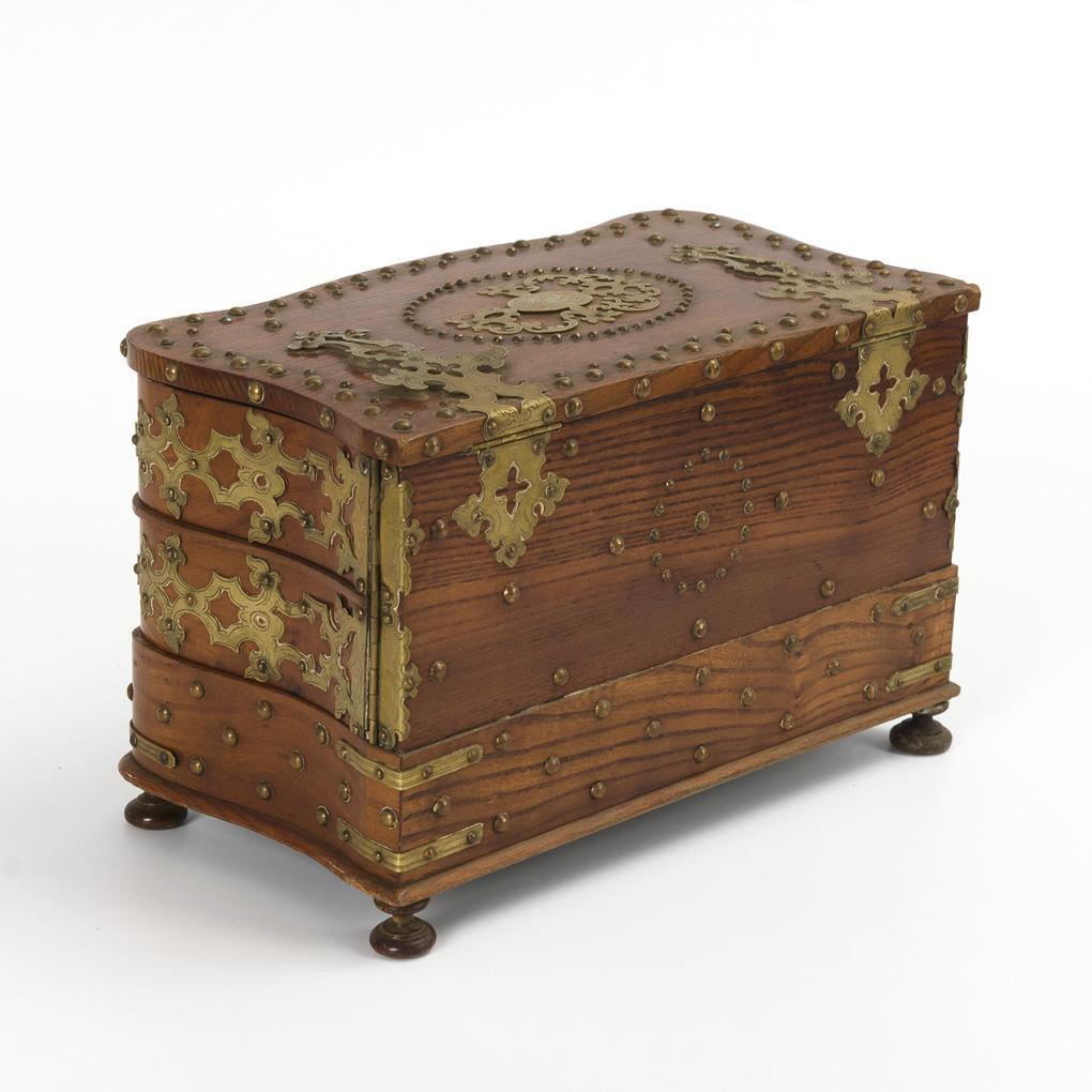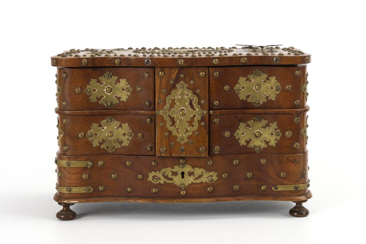 Messingbeschlagene Schmuckschatulle in Kommodenform.