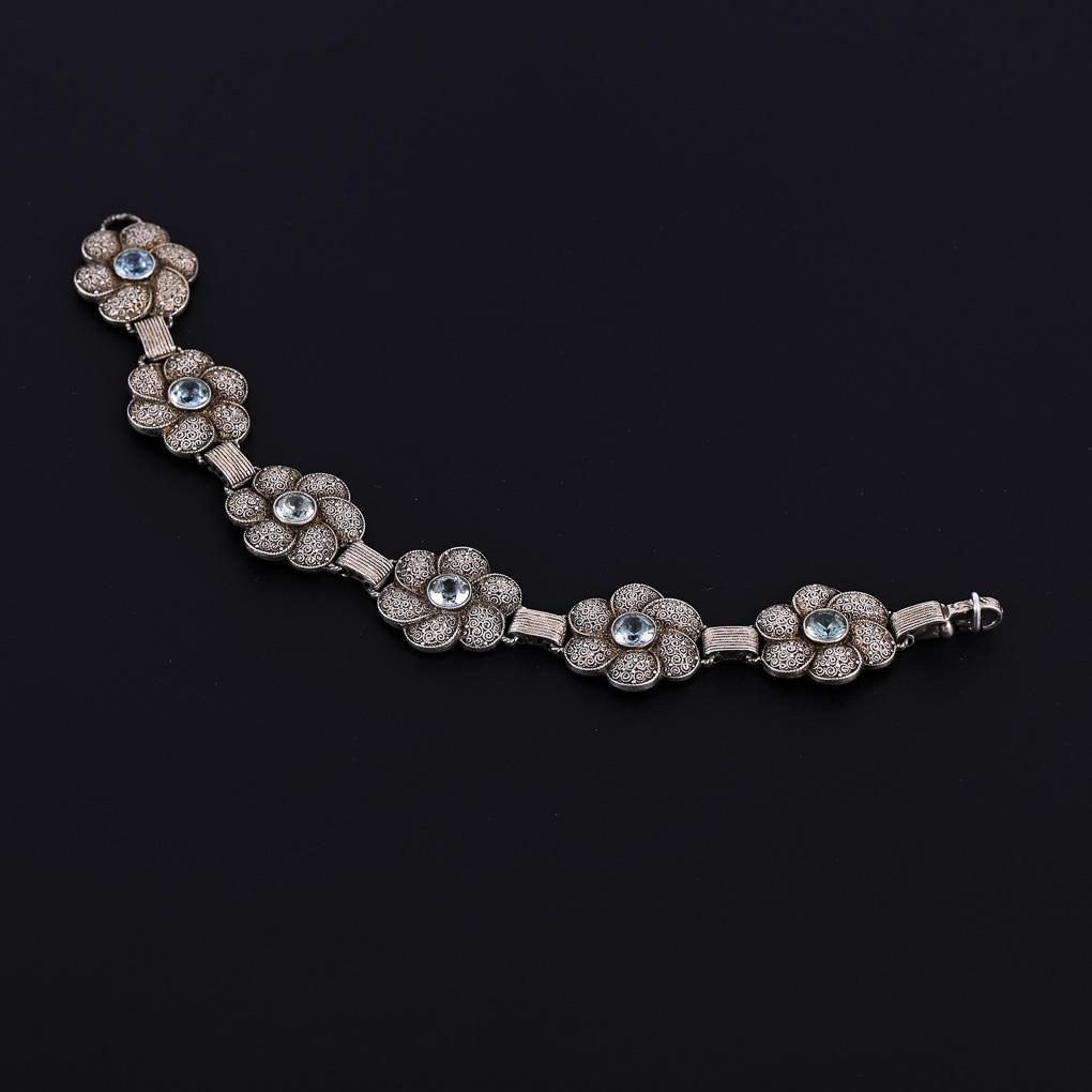 Filigran verzierte Glieder mit 6 zargengefassten Imitationen. Karabinerschließe.